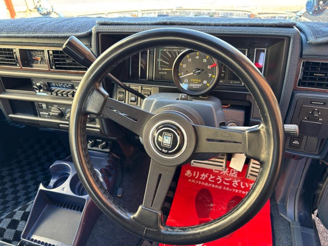 前期丸目4灯移植、スタンダードバンパーコーナー、ワイパーレスリアガラスでスタンダード仕様にカスタムされた希少な車両です! フロントスポイラー、新品砲弾ミラー、ハードトップグリルにマフラーカッター、15インチワイド加工ホイール。内装は希少ブルー内装でベンチコラム変更。ナルディレザーステアリング、バックモニター、Bluetoothレトロオーディオ、ウーハー、スピーカー増設など低走行でカッコいい車両です! ボディー補修、タイミングベルト類は交換して仕上げました!