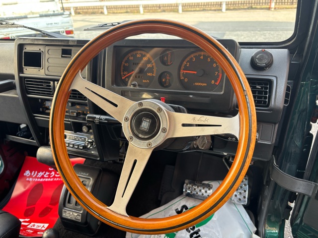 JA11ジムニーの入庫です! 弊社お客様からの下取り入庫で19年乗っておられた車です。 APIOブロンコKIT取付の可愛いジムニーです。 ガタのあるワイパーリンク交換、新品ドアミラー、ヘッドライト交換などして仕上げています。
